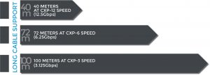 100 meters at CXP-3 speed (3 Gbps)