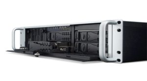 - Four shock-resistant hot-swap disk trays supporting 3.5″ or 2.5″ SAS/SATAdrives for RAID 5/10 application, one slim ODD, and two 2.5″ internal drives
