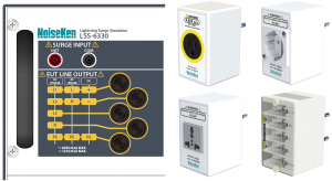 A tester simulatively generates “High energy induced lightning noise” which induced to distribution lines or communication lines by ground potential fluctuation caused by lightning strikes.