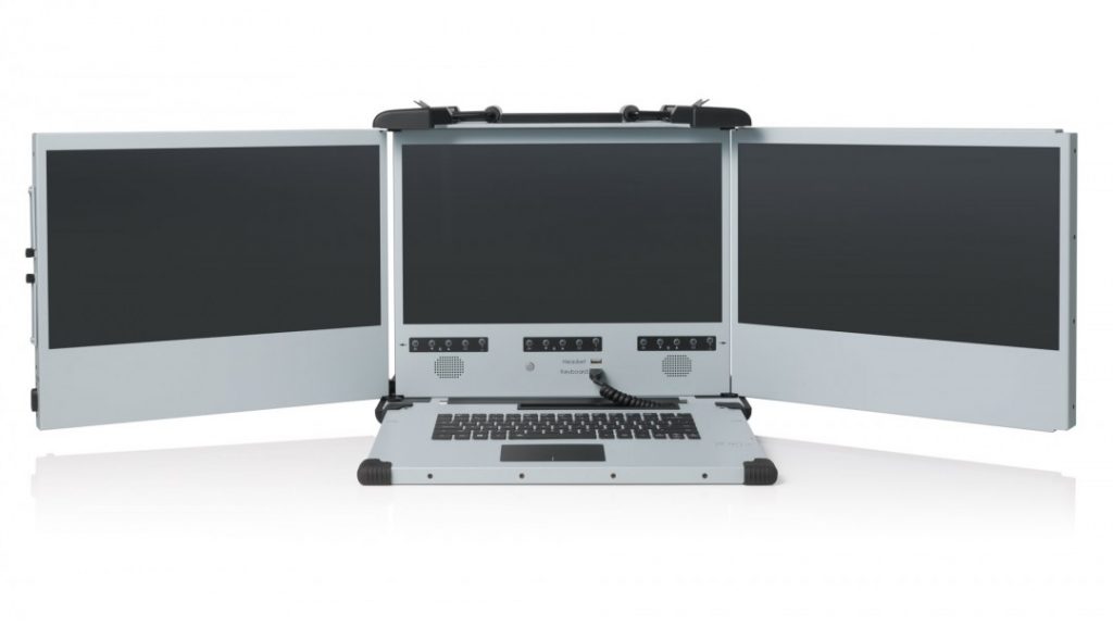 In addition to its highly rugged build, it packs some serious computing power with 3 full HD displays and high efficiency thermostatic convention cooling and airflow systems into an easily transportable package.
