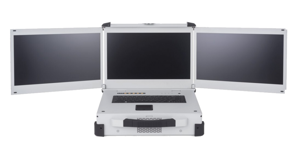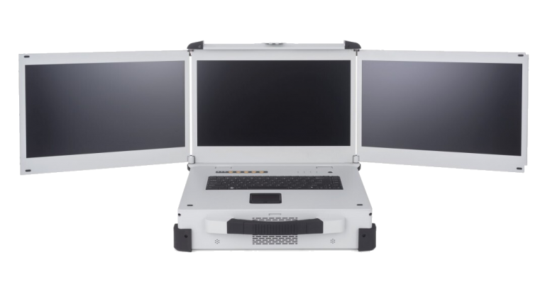 Rugged laptop designed to be compact with triple displays while maintaining excellent performance.