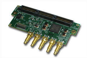This board provides Frac-N based synthesis of local oscillator signals for up/down conversion, digital filtering and 12-bit quantization of baseband data.