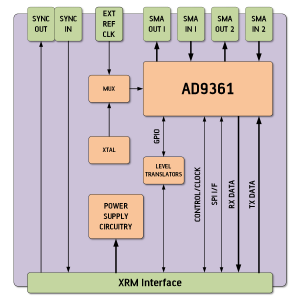 The XRM2-RF-ATD is an XRM2 I/O module, providing two full duplex RF channels at center frequencies between 70 MHz and 6 GHz. Intended for use in FPGA-based general-purpose radio systems.